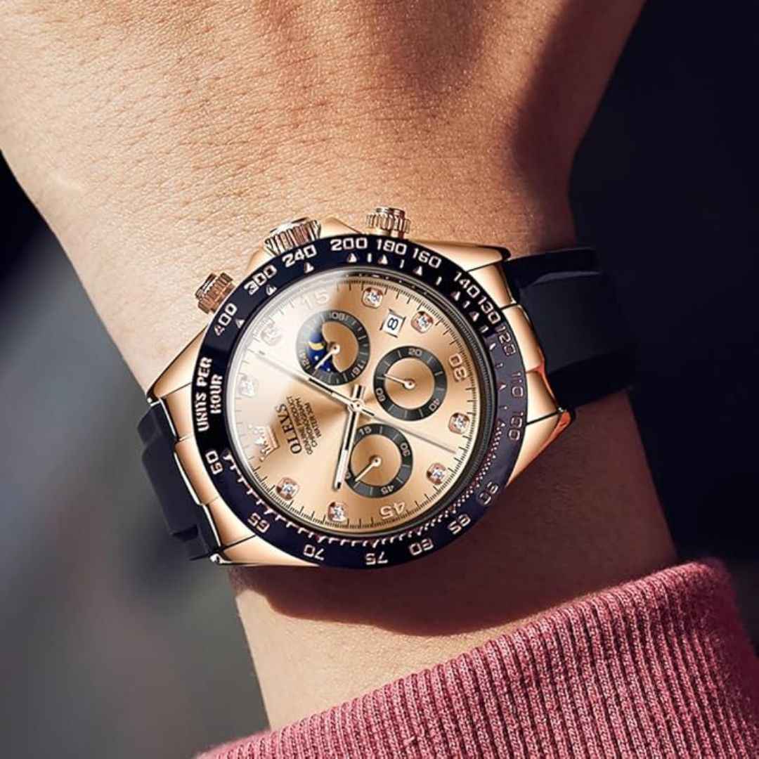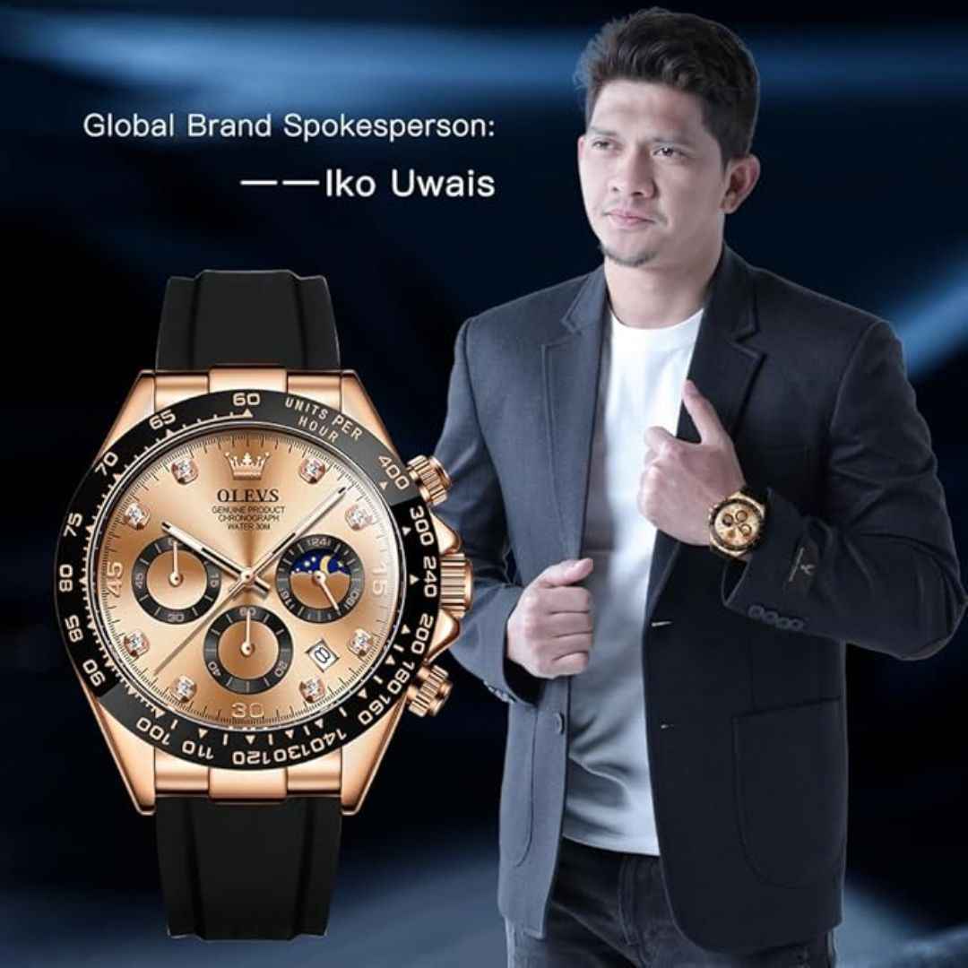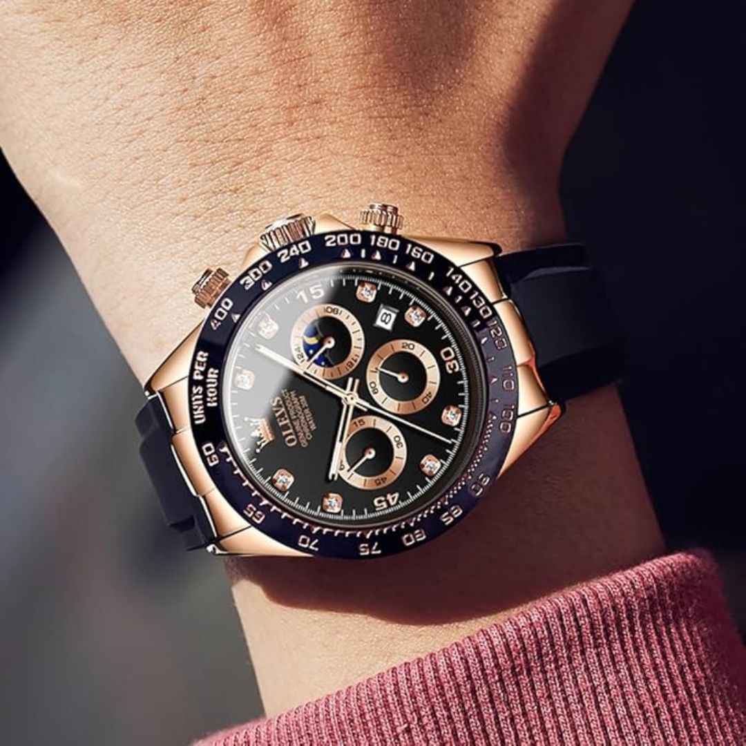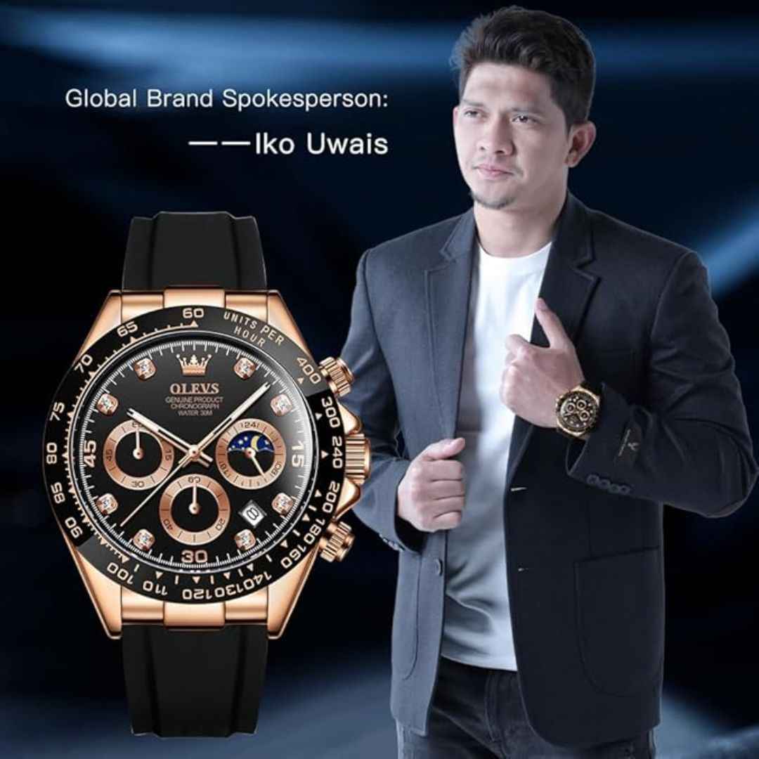 The OLEVS MJ-IND-G2875 collection blends elegance, durability, and functionality. Featuring a 41.5mm case, Japanese Quartz movement, luminous hands, moonphase subdial, and a premium silicone strap, this timepiece is perfect for modern men. All variants come in a luxury gift box.