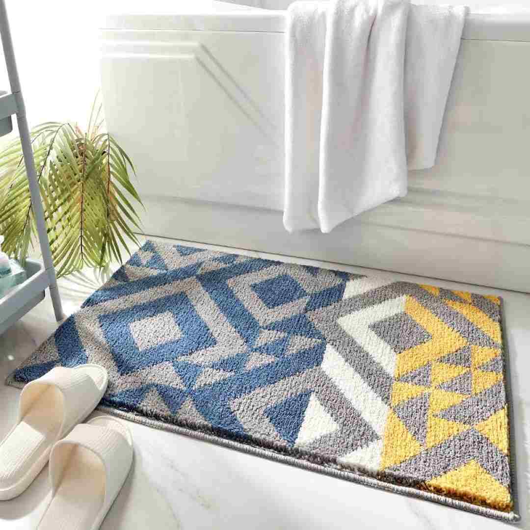 Roseate Tri Colour Super Soft Anti Skid Super Absorbent Mat (Yellow)