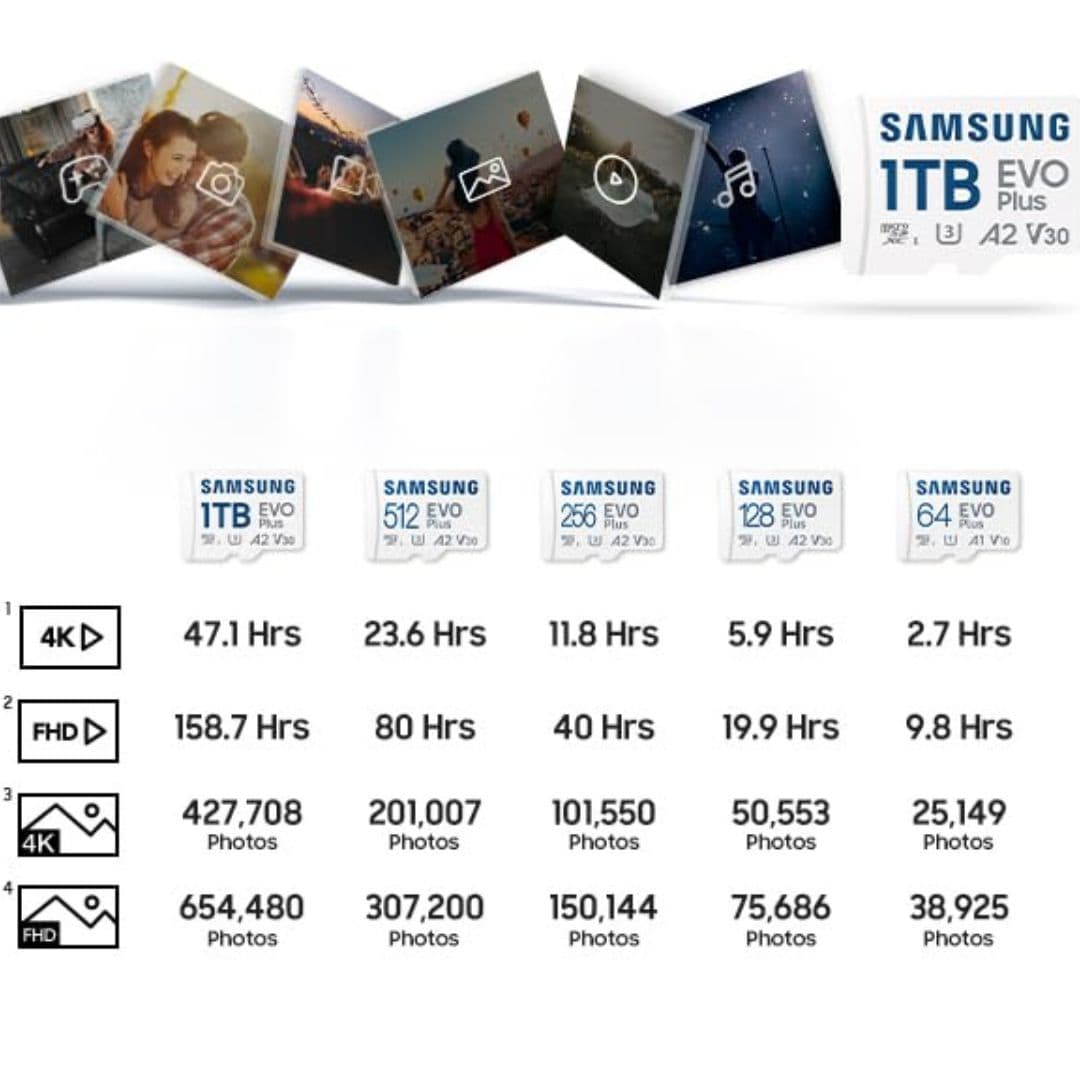 The Samsung EVO Plus 64GB microSDXC Card offers ultra-fast transfer speeds up to 160MB/s, ensuring smooth 4K video recording, large app performance, and quick file transfers. Equipped with U3, Class 10, A2, V30 speed ratings and UHS-I interface, it's ideal for smartphones, tablets, and cameras. Built to withstand tough conditions, it's waterproof, temperature-proof, magnet-proof, X-ray proof, drop-proof, and wearout-proof. Backed by a 10-year limited warranty, this card combines speed, durability, and reliability from the world’s leading flash memory brand.