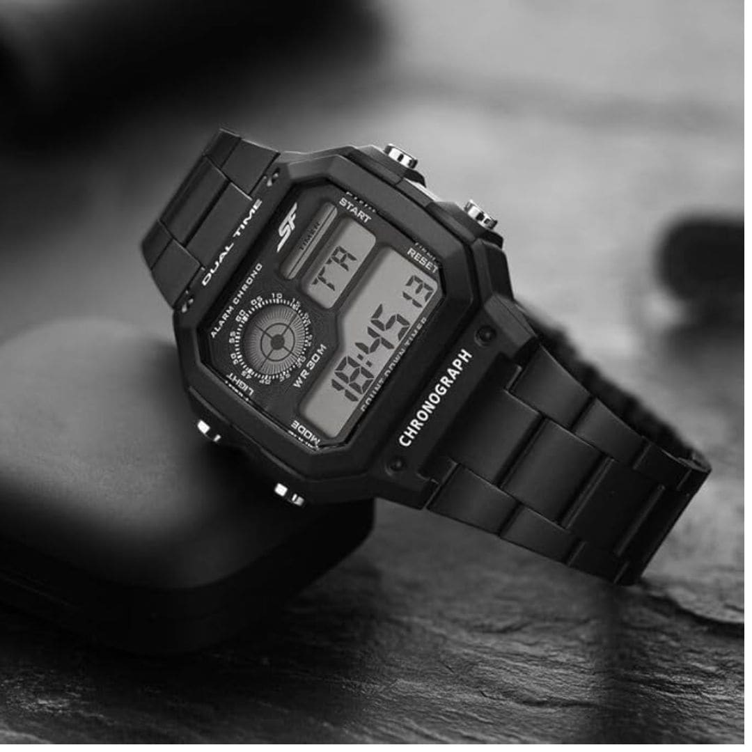 SF Hexa Metal Digital Black Dial Black Stainless Steel Strap Unisex Watch