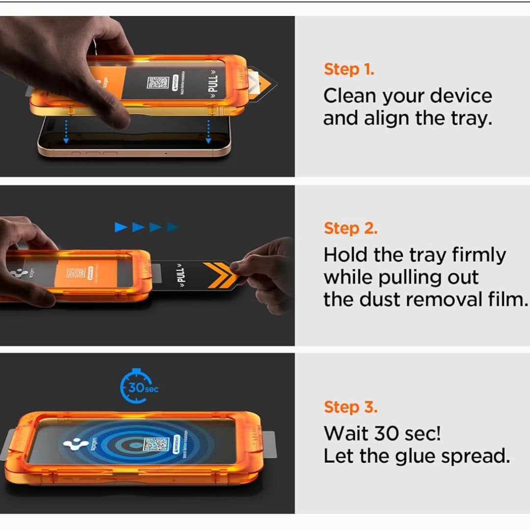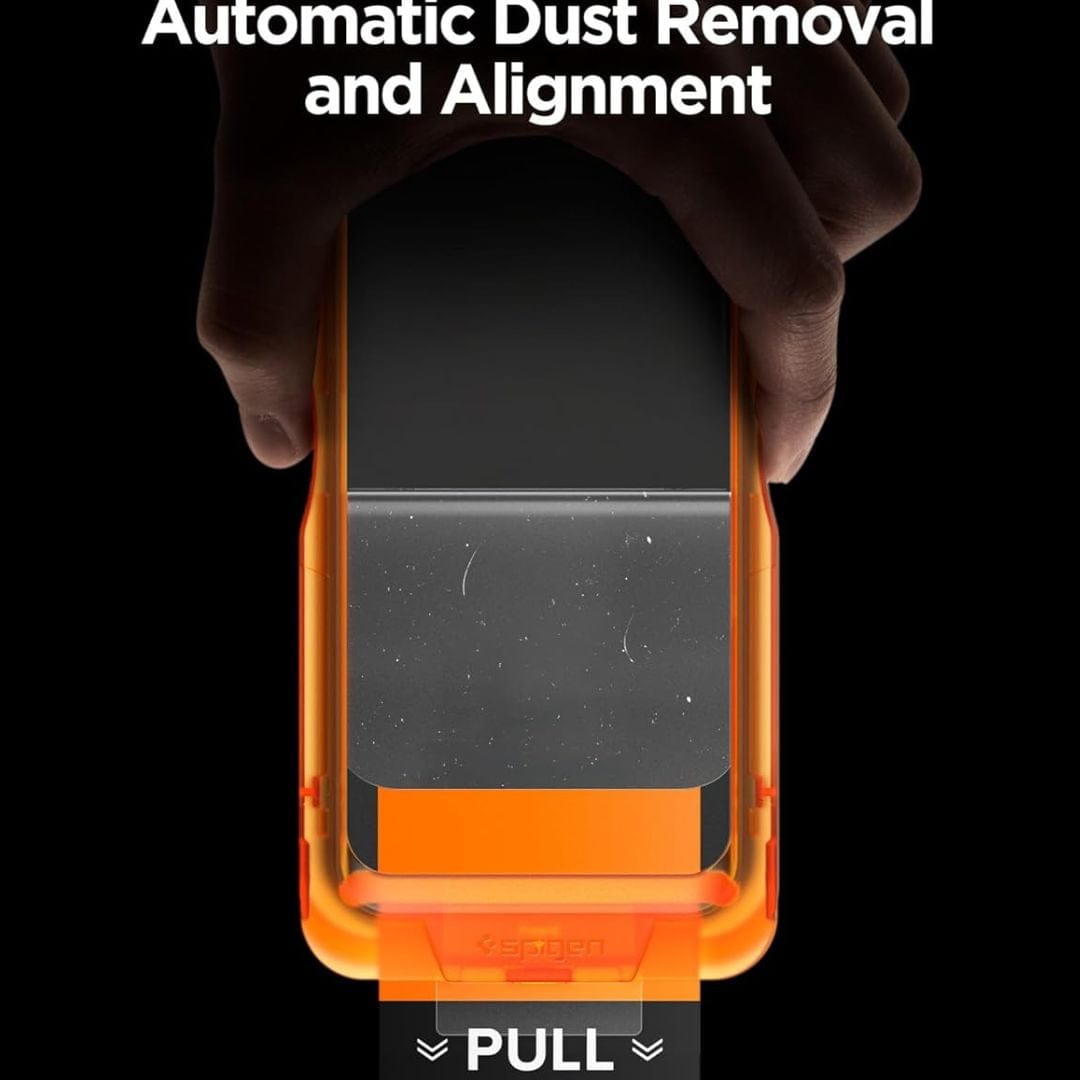 Protect your iPhone 16 or 15 with Spigen’s premium tempered glass screen protector. Crafted from High-Alumina Silicate glass, it offers 9H hardness for superior scratch and drop resistance. The innovative auto-alignment tool ensures a bubble-free, dust-free, and quick installation in seconds. With ultra-clear transparency and highly responsive touch sensitivity, it feels just like using the original iPhone display. Fully compatible with Spigen cases.