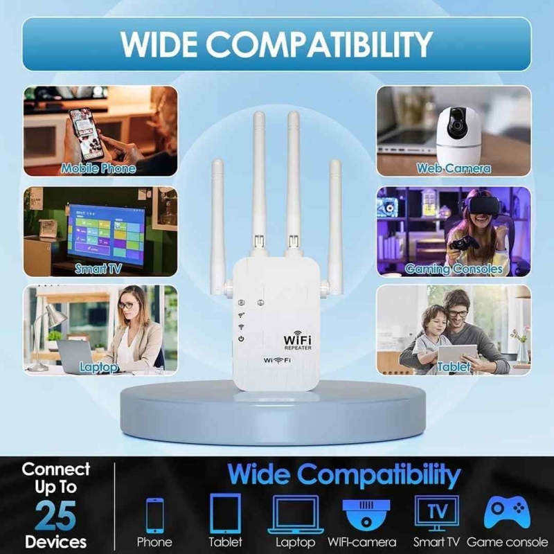 The PunnkFunnk 2.4GHz Wi-Fi Repeater boosts your existing Wi-Fi network to eliminate dead zones and deliver stable, high-speed connectivity across your home or office. Featuring Access Point Mode, an LED indicator, and universal compatibility with all routers, this compact repeater is easy to set up and ideal for streaming, gaming, and everyday internet use.