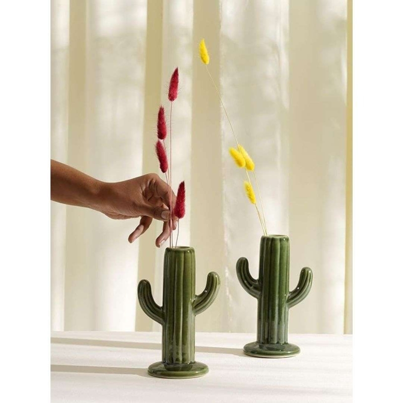 This PUREZENTO ceramic cactus-style vase set combines modern design with a nature-inspired aesthetic. Crafted in a green matte finish, these vases enhance any space—whether styled with dried flowers, pampas grass, or displayed as standalone décor. Perfect for bedrooms, dining rooms, and home offices, the set adds a fresh, contemporary touch to your interiors and also makes a thoughtful gift for special occasions.