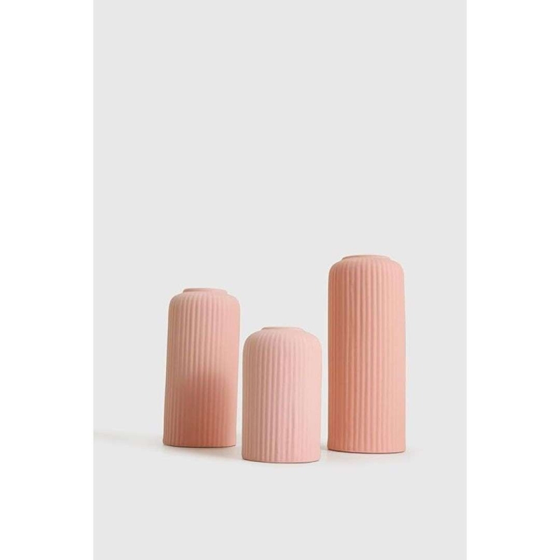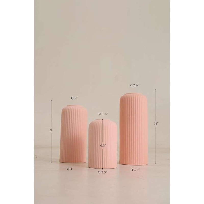 This PUREZENTO set of three ceramic ribbed vases features a sleek modern design with minimalist cylindrical shapes and a smooth matte finish. Perfect for decorating living rooms, bedrooms, or office spaces, these durable and stylish vases can be used with fresh flowers, dried arrangements, or as standalone showpieces. Their elegant design also makes them an excellent gift option for housewarmings, weddings, and festive occasions.