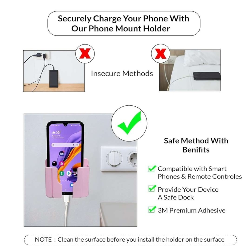Keep your smartphone safe while charging with the Rainbow Dots Wall Mount Mobile Holder. Made from sturdy, non-breakable ABS material with a 4-sided protective design, this holder is easy to install using premium 3M tape—no drilling required. Versatile and compatible with all Android and iPhone models, it is a proudly Made in India mobile accessory.
