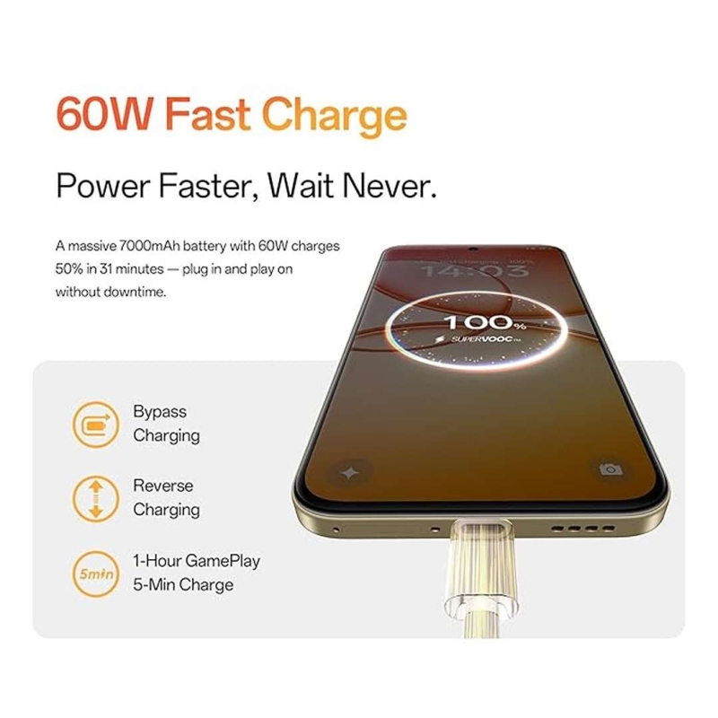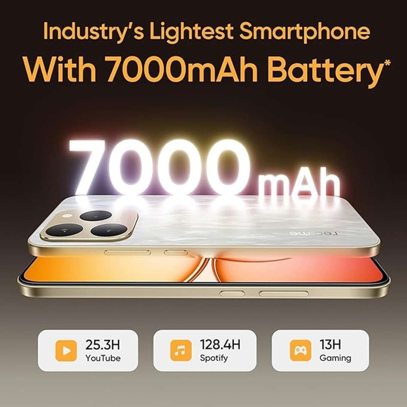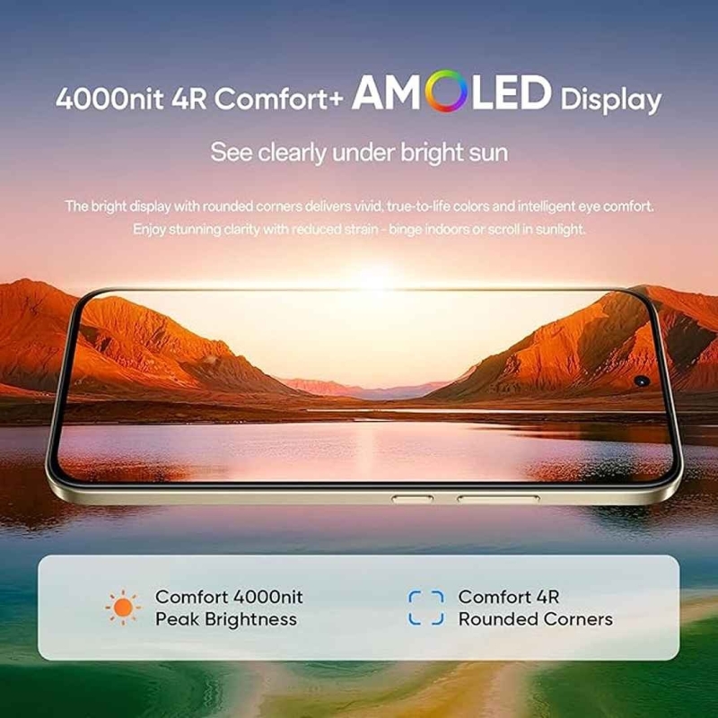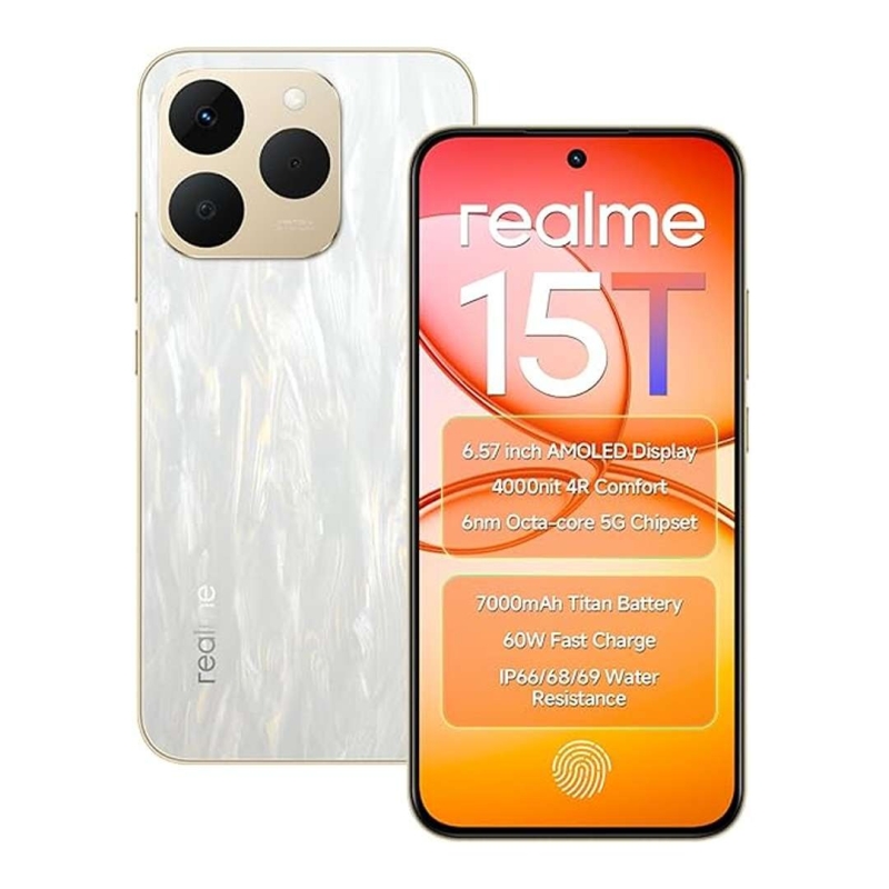 The realme 15T features a massive 7000mAh Titan battery with 60W fast charging, an ultra-bright 4000-nit AMOLED display, and an IP69 durability rating for extreme protection. Powered by Android 15 with 12GB RAM and 256GB storage, it delivers smooth multitasking, strong performance, and excellent outdoor visibility—ideal for heavy users seeking power, durability, and performance in one device.