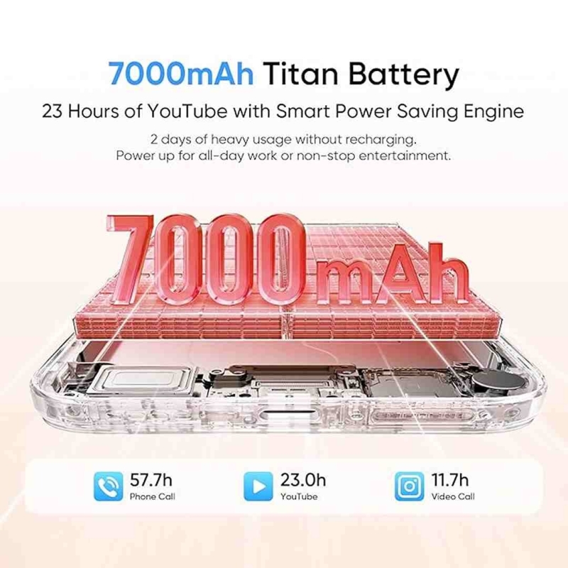 Product Features 1200nit Ultra Bright Display, 7000mAh Titan Battery + 60W Fast Charge, AI Outdoor Mode, IP69 Pro Waterproof, Military-Grade Shock Resistance