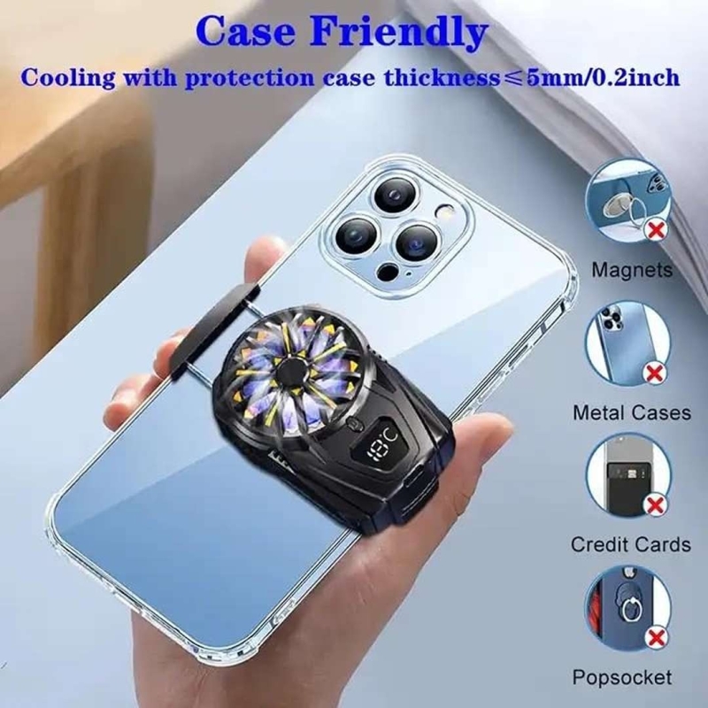| Features | - Two-way retractable buckle for different phone sizes- Switch control for fan- 9-blade ultra-quiet fan- Three-sided suction for enhanced cooling |