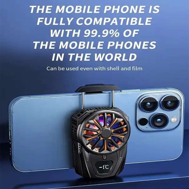 The Cubonic SL Series Mobile Phone Radiator Cooling Fan features semiconductor cooling technology combined with a quiet 9-blade fan to prevent overheating during gaming or heavy phone use. Equipped with a two-way retractable buckle, it fits various phone sizes and offers efficient heat dissipation with its three-sided suction design. Powered via Type-C USB and rechargeable with a built-in lithium-ion battery, it ensures uninterrupted cooling on the go.