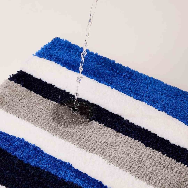 Roseate’s luxuriously thick 2000 GSM microfibre bathmat offers superior softness, high absorbency, and long-lasting durability. Designed with a tufted weave and anti-skid latex backing, it stays securely in place while keeping your floors dry. This machine-washable, medium-pile bathmat is ideal for bathrooms, kitchens, living spaces, or doorways. Made in India, it features a stylish striped design in blue to complement any modern home décor.