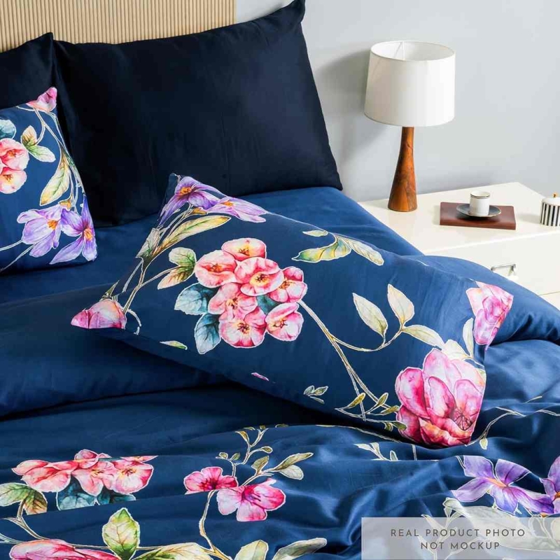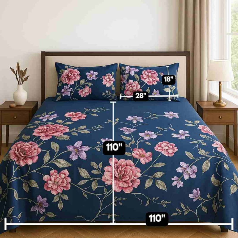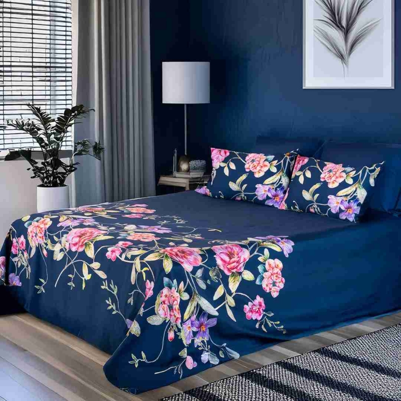 Elevate your bedroom with the RUSTIQUE LINENS Ocean Blue King Bedsheet Set, crafted from luxurious 100% organic cotton with a smooth 300 TC sateen weave. Enhanced with advanced Italian reactive printing, it offers rich, fade-resistant floral patterns that stay vibrant wash after wash. The set includes a soft king-size flat sheet and two matching envelope-closure pillowcases—perfect for those who appreciate comfort, craftsmanship, and refined modern design.