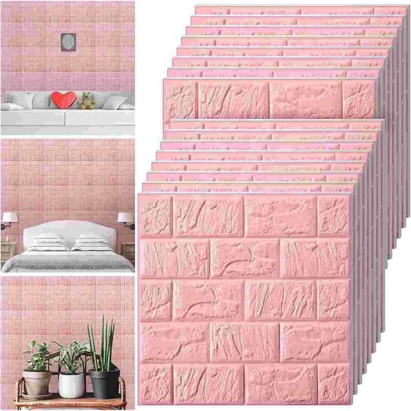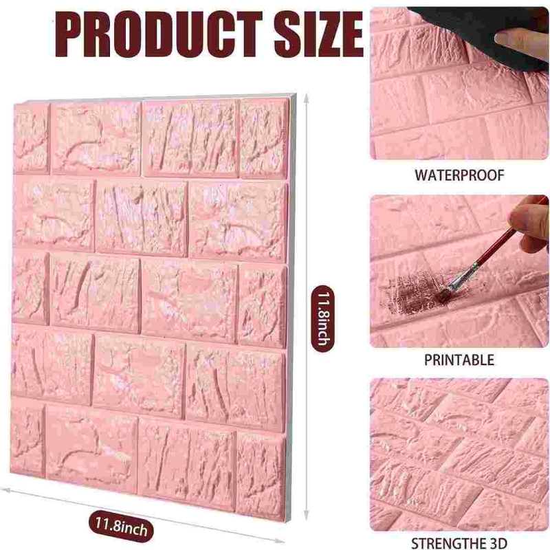Soft 3D peel-and-stick wall sticker by Rylan, made from high-quality polyethylene foam with an 8 mm thickness for enhanced safety and comfort. Designed in a stylish pink brick pattern, it is waterproof, moisture-proof, sound-insulated, and easy to clean. Ideal for quick DIY wall décor in bedrooms, living rooms, kitchens, offices, and more.