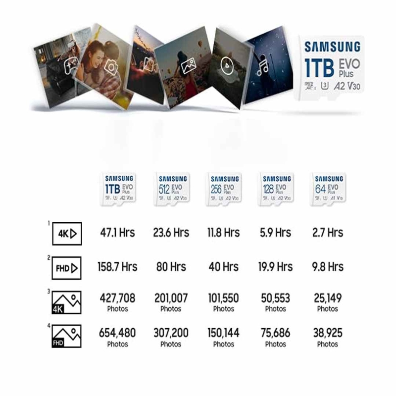 The Samsung EVO Plus 64GB microSDXC Memory Card provides high-speed, reliable storage for cameras, smartphones, and tablets. With read speeds up to 160MB/s and U3, Class 10, V30, A2, and UHS-I ratings, it enables smooth 4K video recording, fast app loading, and quick file transfers. Designed for durability, the card is drop, magnetic, temperature, water, and wearout proof, and comes with a 10-year limited warranty from the world’s No.1 flash memory brand.