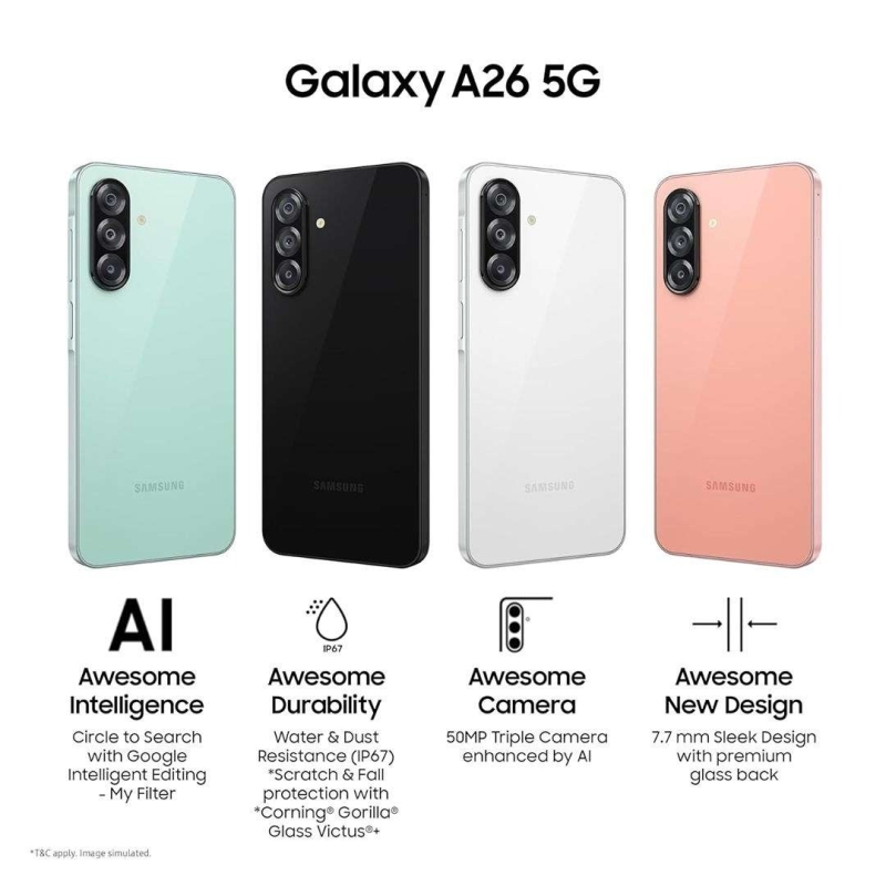 The Samsung SM-A266B is a sleek and powerful smartphone featuring a 6.7” FHD+ Super AMOLED display, 8GB RAM, and a 2.4 GHz 5X86 processor. It comes with a 50MP OIS camera with VDIS, long-lasting 5000mAh battery, and advanced AI features like Gemini Live and intelligent photo editing. Built for durability with IP67 rating and Corning Gorilla Glass Victus+, it offers future-ready updates with 6 OS upgrades and 6 years of security patches. Enjoy a seamless experience with OneUI, Samsung Wallet, and enhanced multitasking capabilities.