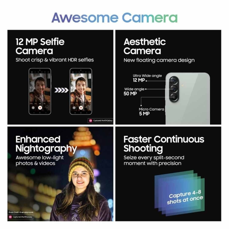 | Camera (Rear) | 50 MP (OIS) Main + 12 MP Ultra-wide + 5 MP Macro |