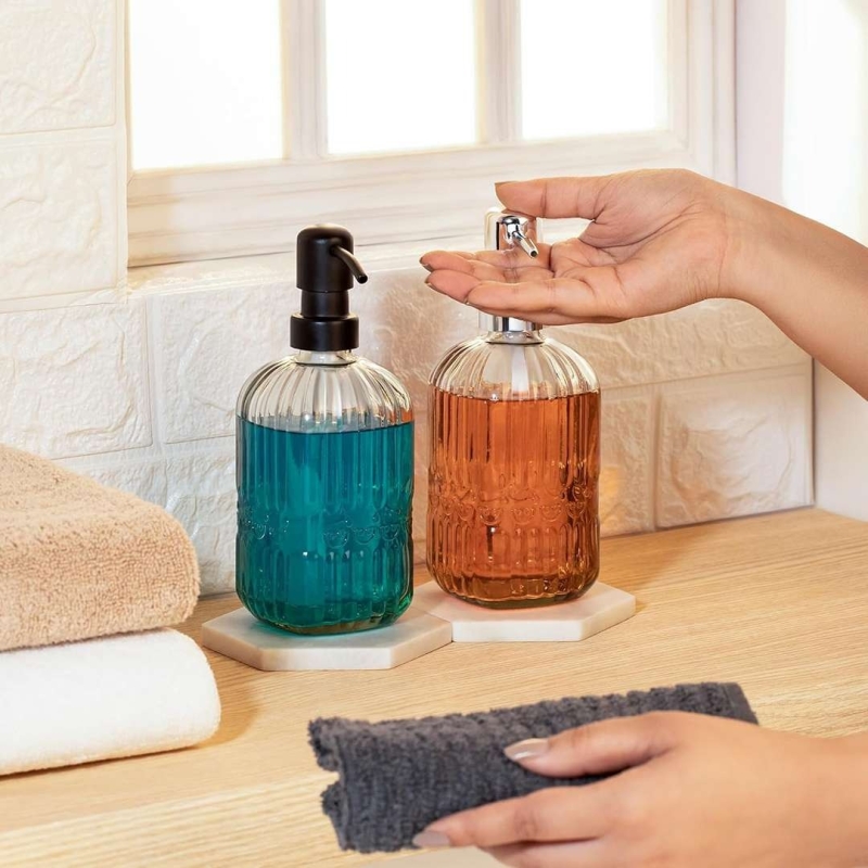 | Generic Name | Sand Dune Set of 1, 400 ml Each Clear Glass Silver Press Pump Soap Dispenser |