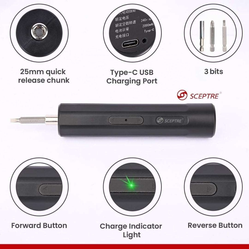 The Sceptre USB-C Electric Screwdriver is a compact, lightweight, and rechargeable tool designed for effortless DIY, home, and office tasks. With 3Nm high torque, an ergonomic soft-grip design, and a built-in LED work light, it ensures precise and comfortable screwdriving even in low-light conditions.