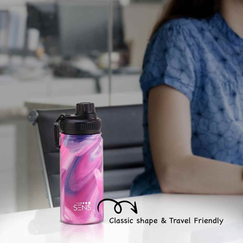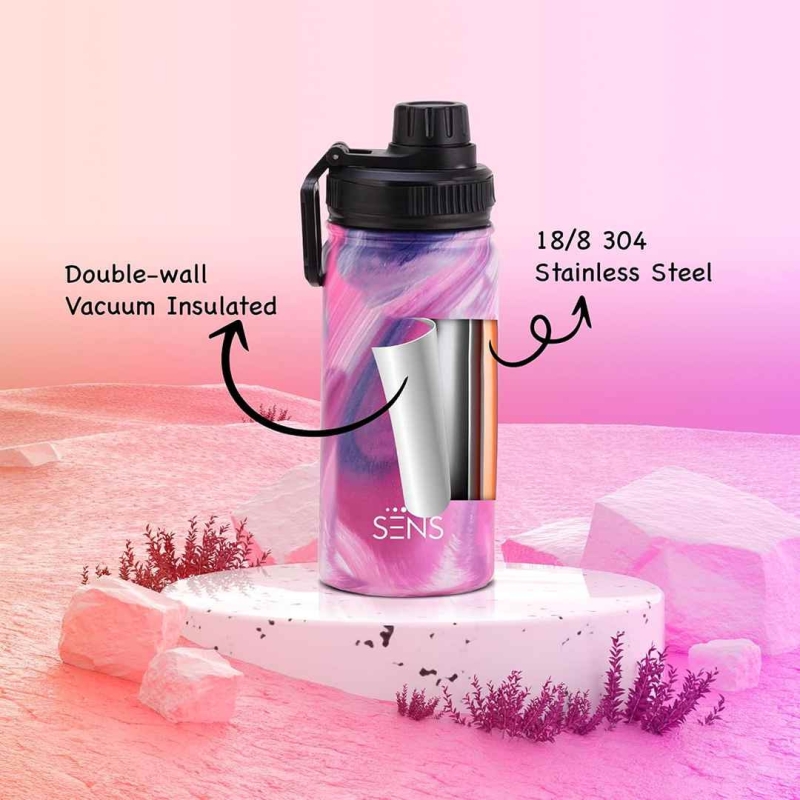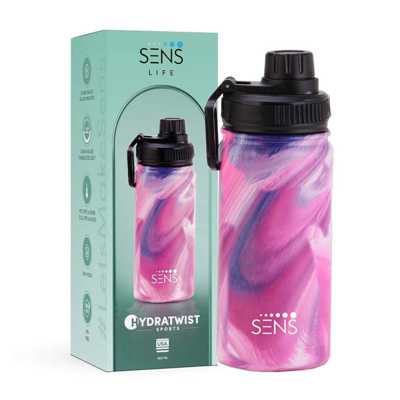 The SENS Hydra Twist 500ml is a premium stainless-steel, double-wall vacuum-insulated bottle designed to keep beverages hot for up to 12 hours and cold for up to 24 hours. With a leakproof screw cap, BPA-free construction, and a stylish cosmic marble finish, it’s ideal for coffee, tea, water, and soups. Durable, rust-resistant, and easy to carry—perfect for everyday use.