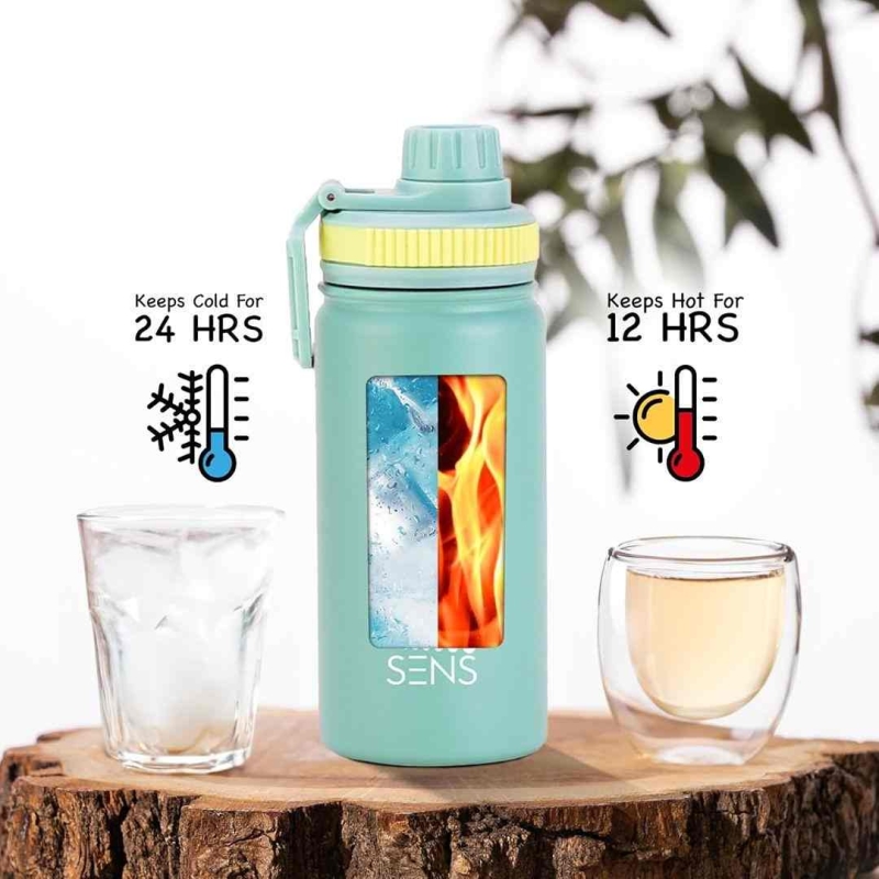 Keep your beverages at the perfect temperature wherever you go with the SENS HYDRA DOMINO 500 ML Thermos Bottle. Crafted from durable 304 stainless steel, this stylish and ergonomic bottle keeps drinks hot for up to 12 hours and cold for up to 24 hours. Its leak-proof, BPA-free design makes it perfect for coffee, tea, soup, or water—ideal for travel, gym, or daily use.