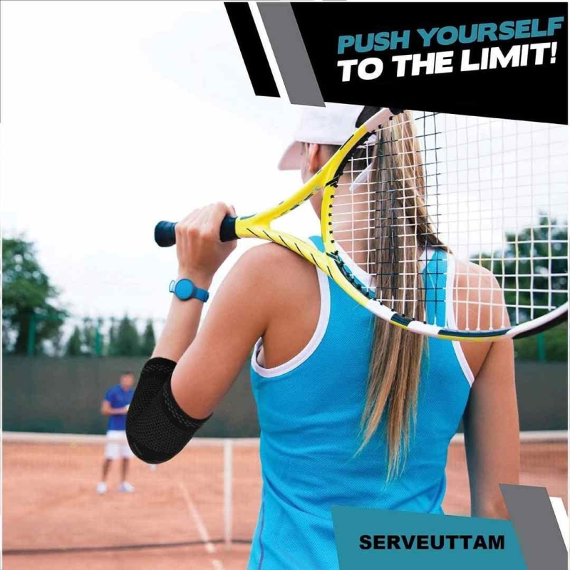 The Serveuttam Elbow Brace Support offers targeted compression for tendinitis, tennis elbow, and muscle strain relief. Made with a breathable blend of nylon, polyester, and spandex, it features adjustable Velcro straps, a non-slip design, and optimal support for daily activities and sports like cricket, tennis, and volleyball. Lightweight, comfortable, and durable—ideal for all-day wear.