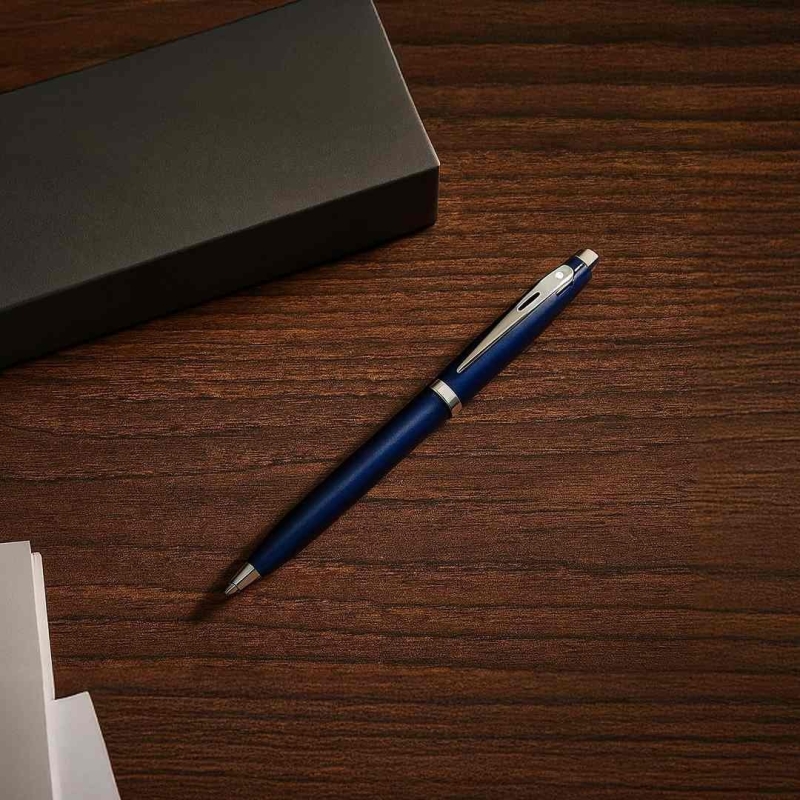 The Sheaffer Blue Ballpoint Pen features a sleek, elegant design with a stylish cut-out clip and the iconic White Dot, symbolizing writing excellence. Perfect for corporate gifting, personalization, and everyday use, it comes packaged in a luxury Sheaffer gift box.