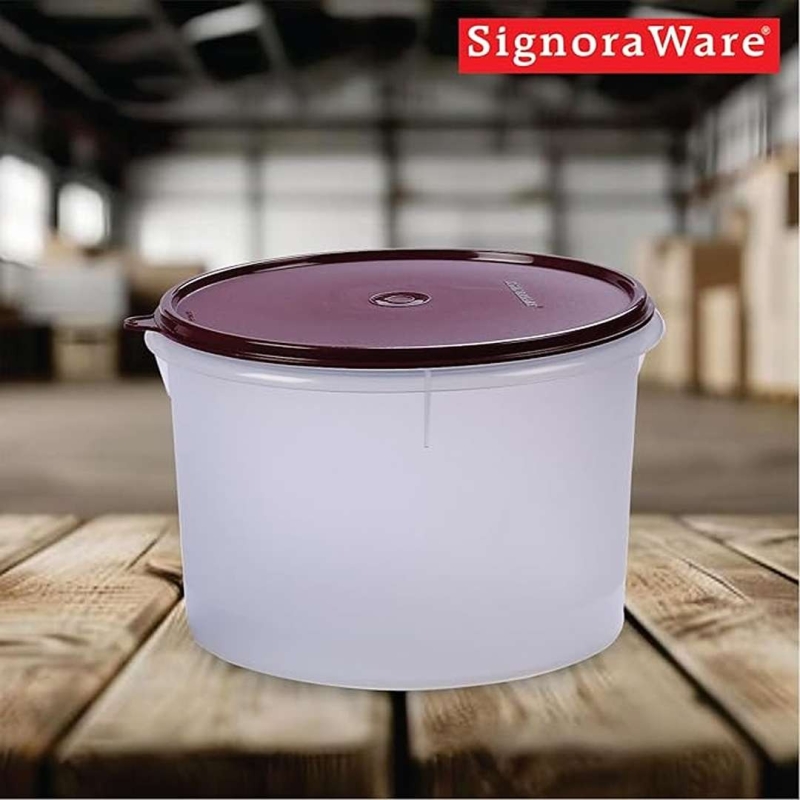 The Signoraware Storewell Round Container (3.5 L) is a durable, BPA-free, airtight food-storage solution designed for organizing grains, spices, pulses, snacks, and other dry kitchen essentials. Its leak-proof push-lock lid ensures long-lasting freshness, while the stackable, freezer-safe, microwave-safe, and dishwasher-safe design makes it a highly practical choice for every modern kitchen.