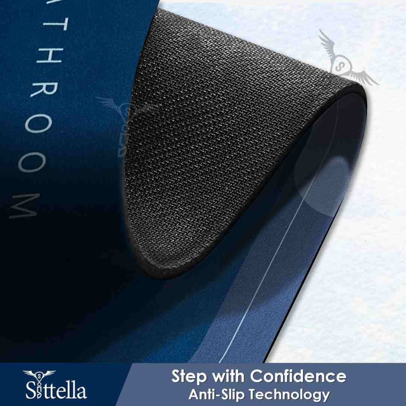 The SITTELLA Rubber Bath Mat is a durable, quick-drying, and non-slip mat designed for both indoor and outdoor use. Made with a 4-layer construction—including a soft nubuck fabric top, diatomaceous earth layer for rapid water absorption, a cushioning sponge layer, and a non-slip rubber bottom—it ensures maximum safety and comfort. It is stain-resistant, machine-washable, waterproof, and ideal for bathrooms and wet areas. The mat measures 60 x 40 cm, comes in a light blue color, and features a classic oval design.