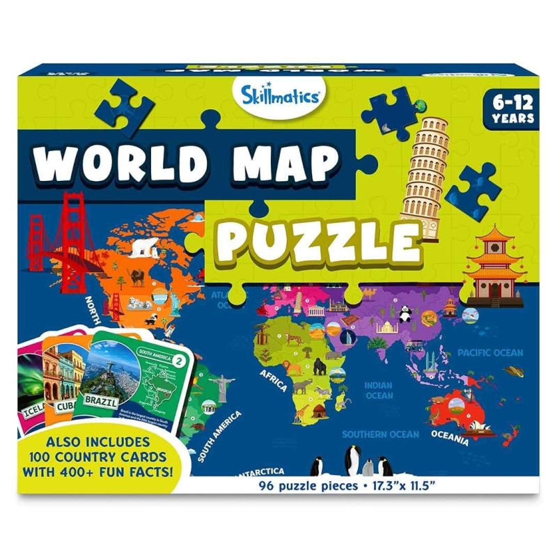 | Included Components | 96 Puzzle Pieces, 100 Country Cards, 1 Reference Sheet, Instruction Manual |