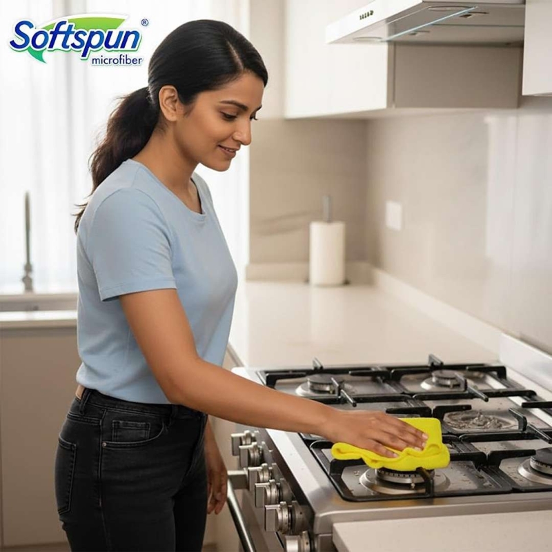 SOFTSPUN Microfiber Cleaning Cloth is a premium, super-absorbent, lint-free, and streak-free kitchen and multipurpose towel made from an 80% polyester and 20% polyamide blend. Its soft, scratch-free microfiber cleans effectively without chemicals, dries quickly, and is safe for all surfaces. With durable rounded-corner stitching, this 40×40 cm cloth is ideal for kitchens, cars, windows, electronics, bathrooms, and even personal use for babies and adults.