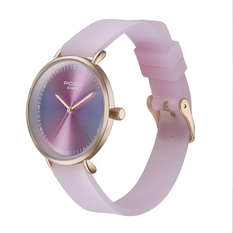 The Sonata Poze Quartz Watch is a charming and elegant wristwatch for women, blending simplicity with style. Available in pink and blue dials paired with matching leather straps, this analog timepiece is ideal for daily wear or as a gift. Powered by a reliable quartz movement, it ensures accurate timekeeping and comes with a durable build crafted by Titan Company Limited in India.