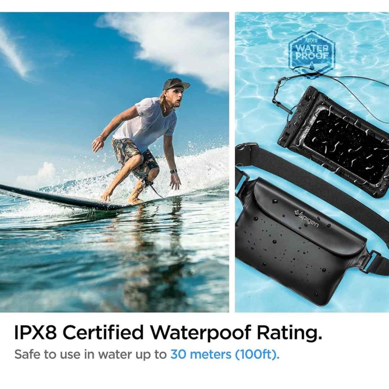 An all-in-one waterproof water-activity kit featuring a waterproof pouch bag and an IPX8-certified mobile phone case. Designed for swimming, beach trips, boating, and outdoor adventures, it offers secure storage, adjustable straps, and reliable underwater protection up to 30 meters with responsive touchscreen usability.