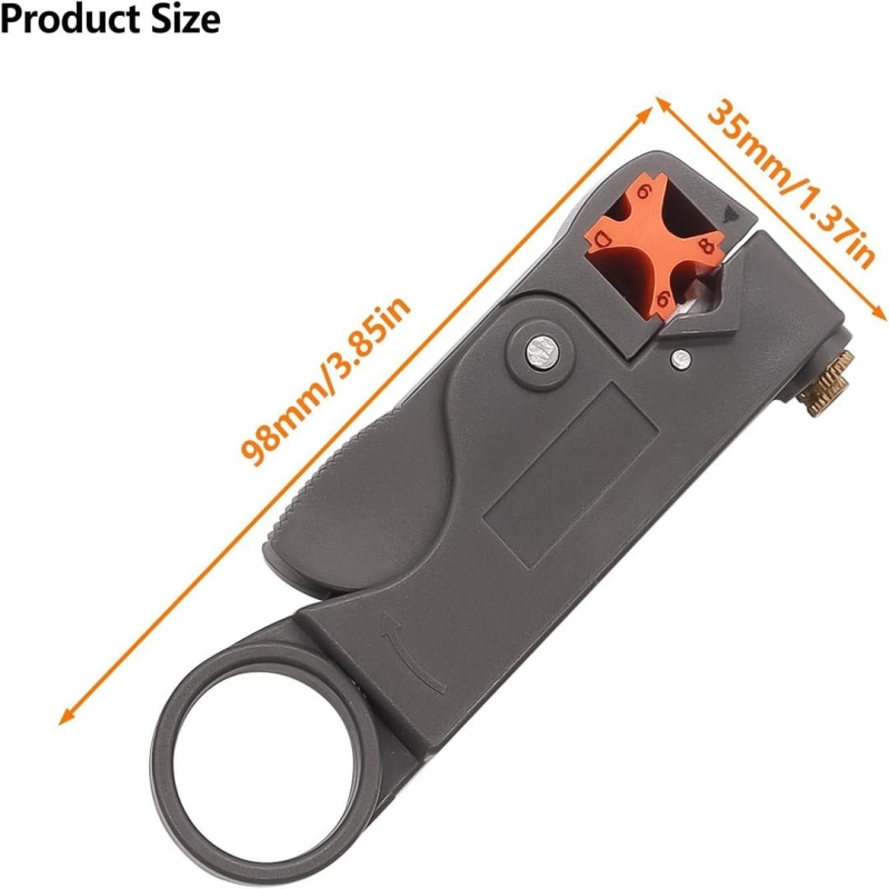 The SPIN CART BT-332 Rotary Coaxial Cable Stripper is a compact and efficient tool designed for precise stripping of various coaxial cables. Made from durable ABS plastic with a non-slip grip, it features a rotary stripping mechanism that ensures quick, clean, and consistent cable preparation for residential and commercial installations.