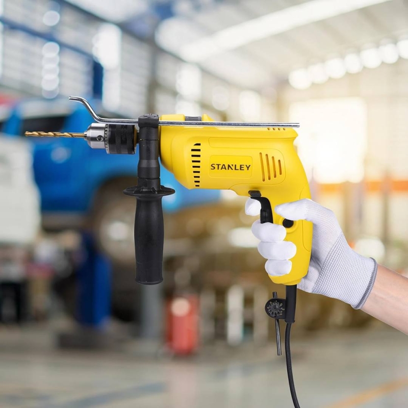 The STANLEY SDH600KP-IN Hammer Drill Kit is a powerful 600W corded hammer drill designed for drilling concrete, metal, and wood with ease. With a compact, lightweight build, variable speed control, and forward/reverse rotation, it is ideal for both DIY users and professionals. The kit includes 120 essential tools and accessories, all packed in a durable toolbox for versatile home and workshop applications.