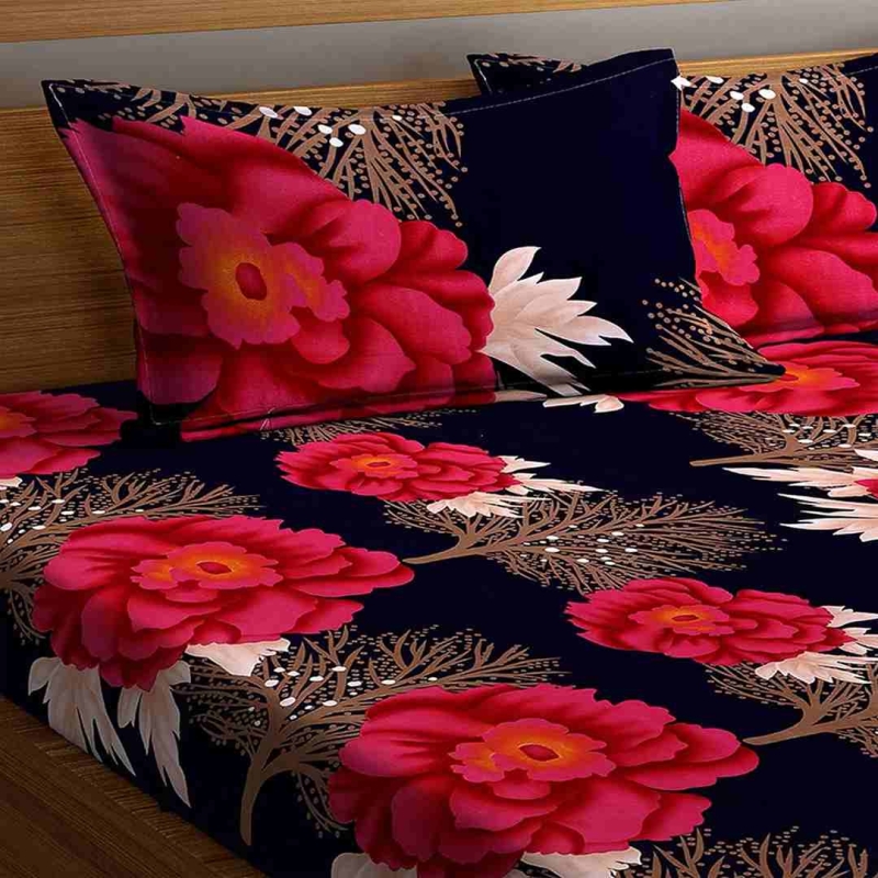 Experience comfort and style with the STARNSTYLE Polycotton Double Bedsheet Set. Featuring a vibrant blue and red floral design, this feather-touch fabric offers superior softness, breathability, and long-lasting colors. Durable, easy to maintain, and perfect for year-round use, the set includes one double bedsheet and two matching pillow covers—ideal for enhancing any room’s décor.