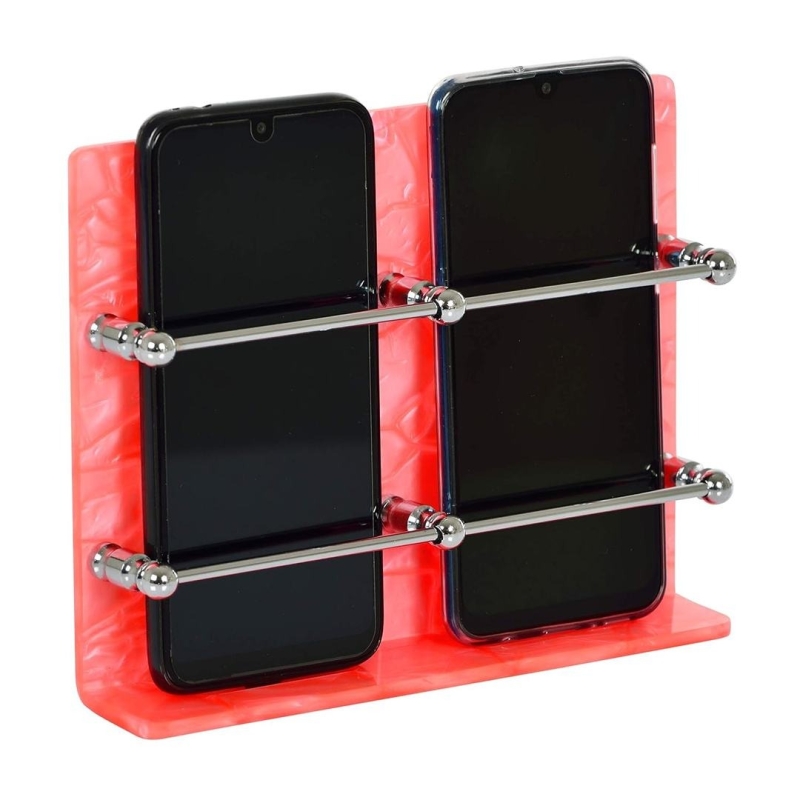 The STIMULUS Marble Pink Acrylic Mobile Charging Wall Stand is a stylish, space-saving wall-mounted holder designed to securely hold smartphones, TV/AC remotes, and small accessories. Made from premium acrylic with a smooth glossy finish, it features a strong self-adhesive backing—no drilling required. Ideal for safe phone charging and clutter-free organization at home or office. Proudly Made in India.