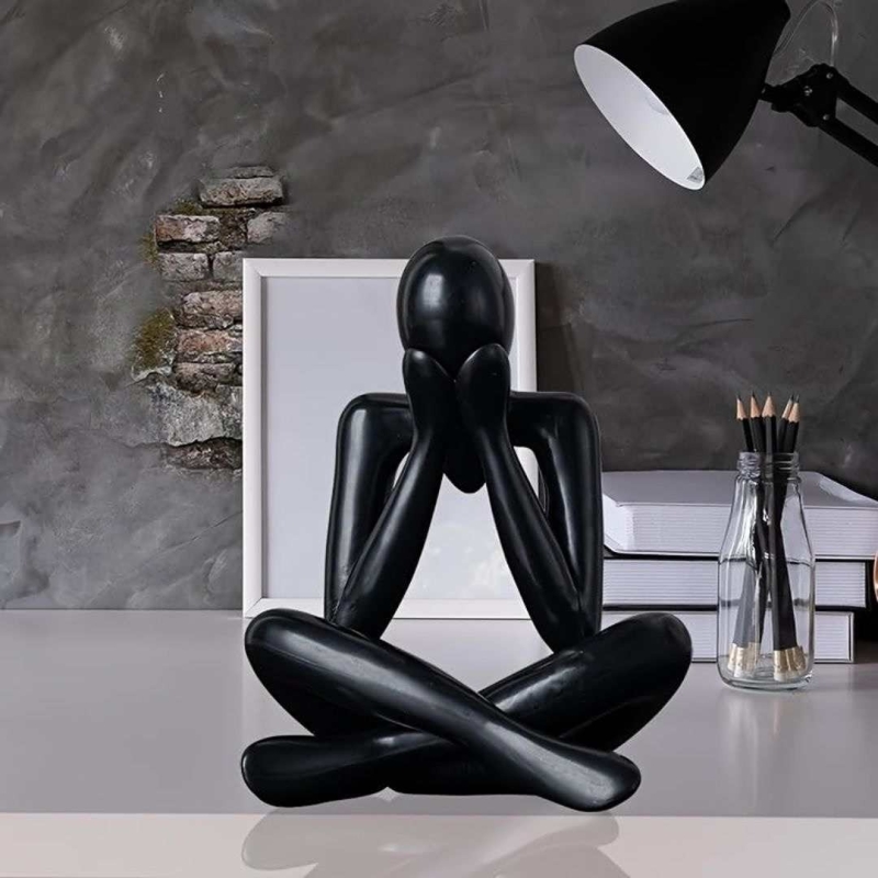 This modern abstract Thinker Men statue set by Street27 features four uniquely posed figurines crafted from durable PVC with a sleek black matte finish. Designed as decorative showpieces, they add elegance and artistic depth to bookshelves, living rooms, offices, and study spaces. Stylish, versatile, and symbolic of contemplation, they make a thoughtful gift for art lovers and home-decor enthusiasts.