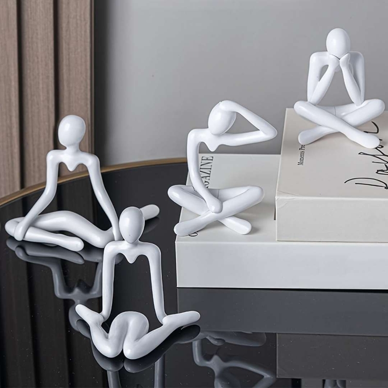A modern abstract Thinker statue set by Street27, crafted from durable PVC with elegant black accents. This 4-piece decorative set adds a touch of sophistication to bookshelves, living rooms, offices, or study spaces—perfect for housewarming gifts and contemporary home décor.