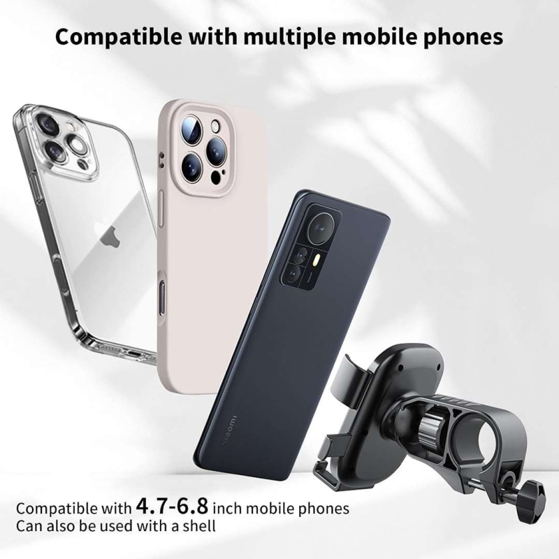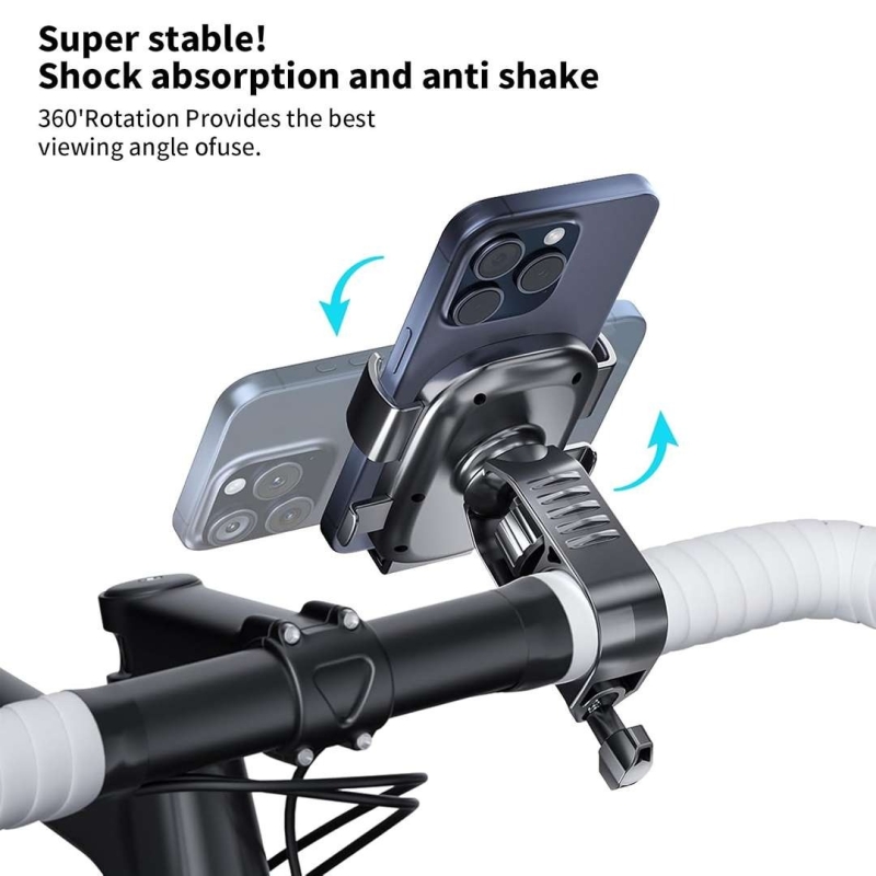 The STRIFF Bike Mobile Holder is a sturdy and adjustable phone mount designed for bicycles, motorcycles, and scooters. Featuring a 360° rotatable ball joint, one-hand operation, and shock-resistant grip, it securely holds smartphones from 3.5 to 6.5 inches even on bumpy roads. Easy to install on handlebars or rearview mirror rods, it ensures safe navigation, calls, and music access without blocking ports or the camera—making it a reliable companion for every ride.