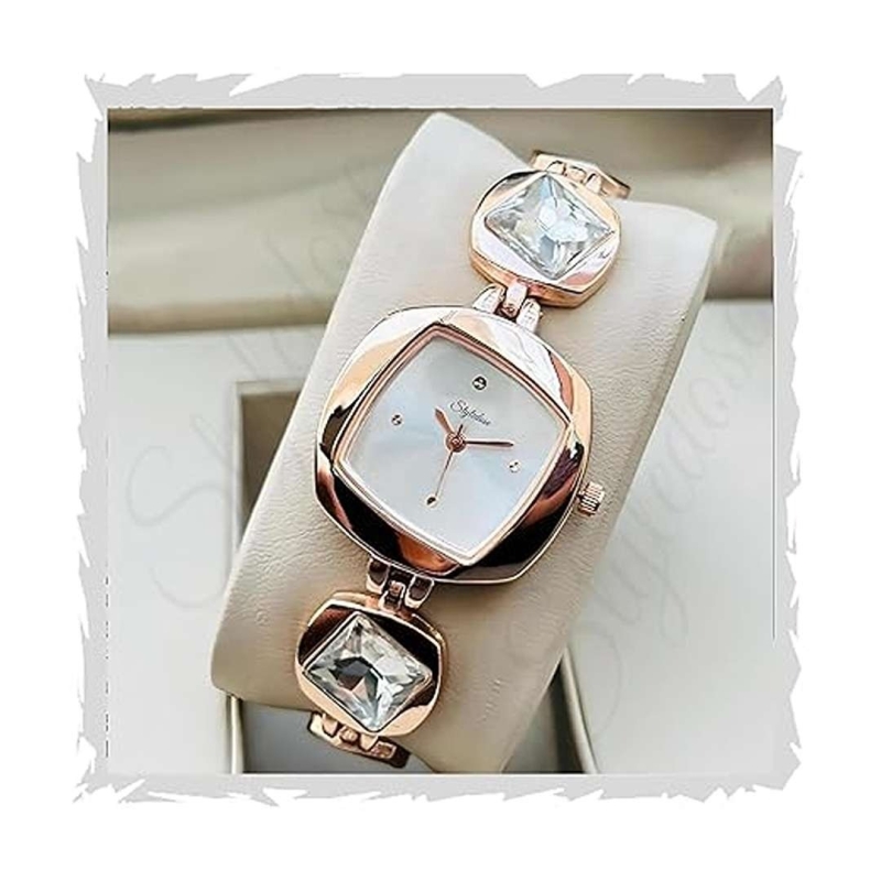The Styledose is a stunning women's analog watch with a rose gold stone-studded metal strap and a square crystal dial. Designed for elegance and daily wear, this watch features Japanese quartz movement, premium crystal glass, and a comfortable fit. A perfect Raksha Bandhan gift for your sister, it adds a fashionable yet timeless charm to any outfit.