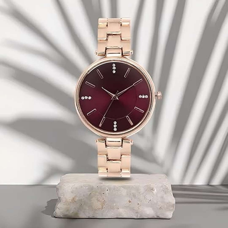 The Styledose analog women’s watch offers a refined blend of classic charm and modern elegance. Featuring a sleek 30mm round case, white dial, rose gold stainless steel strap, and Japanese Quartz movement, this lightweight timepiece ensures both precision and style. Enhanced with Roman numeral markers, scratch-resistant crystal glass, and a magnetic closure, it’s perfect for everyday elegance or festive occasions. Ideal as a Raksha Bandhan gift, this combo set includes a matching bracelet, making it a timeless and meaningful present.