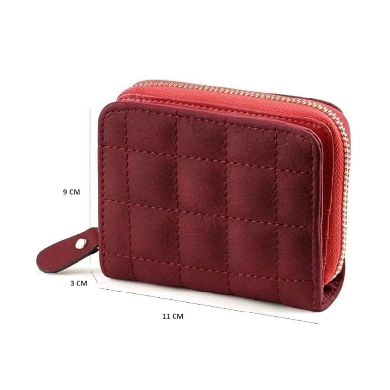 This SYGA two-fold checkered wallet is crafted from high-quality faux leather and designed for everyday use. It features multiple compartments, card slots, a secure zipper closure, and a stylish red bi-fold form factor—perfect for adults seeking a compact yet functional wallet.