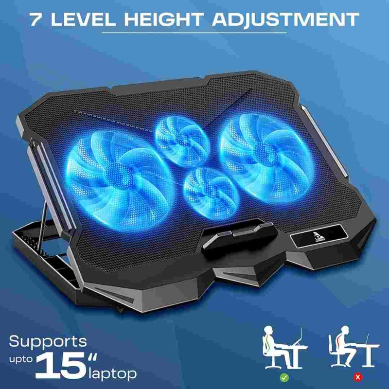 The TAG GAMERZ Glacier Laptop Cooling Pad is a robust, high-performance cooling solution designed for extended laptop use. Featuring 8 cm high-speed fans operating up to 1900 RPM, adjustable fan speed control, and six ergonomic height levels, it ensures effective heat dissipation and all-day comfort. Built with a durable metal surface, dual USB ports with hidden cable storage, and anti-slip baffles, it delivers stable and reliable performance for work or gaming setups.