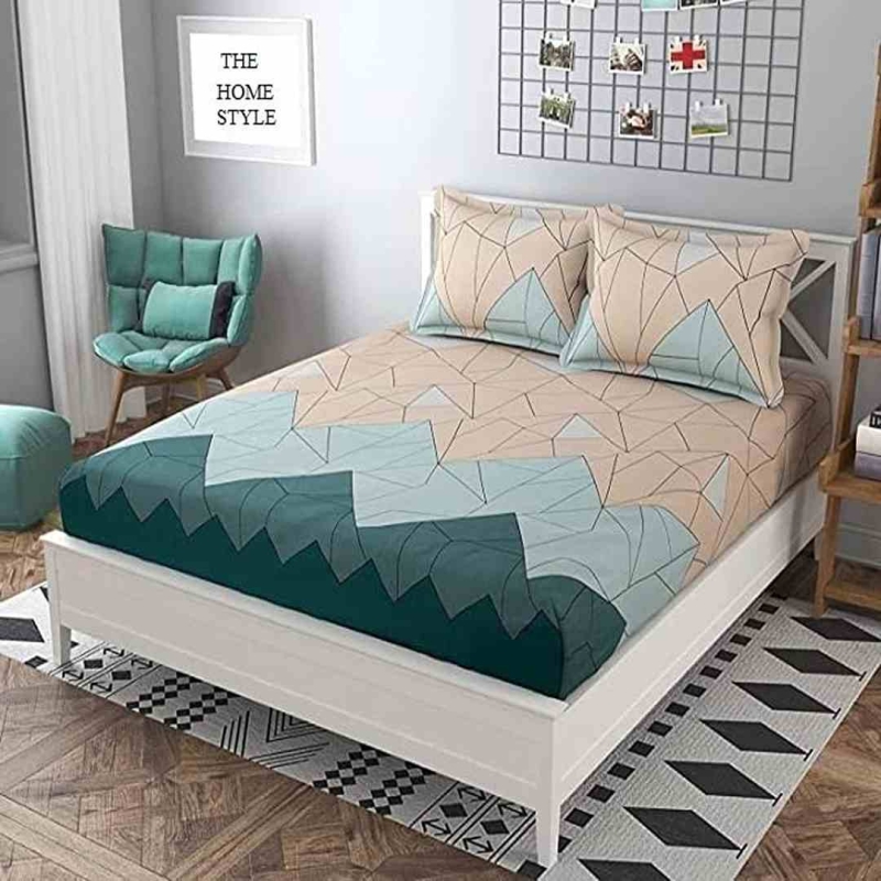 Experience superior comfort with THE HOME STYLE Glace Cotton Queen Fitted Bedsheet Set in soothing Pastel Green. Crafted with breathable, wrinkle-resistant, and stain-resistant Glace Cotton, this fitted bedsheet features all-around elastic for a snug fit on mattresses 4–8 inches high. The floral-geometric printed design adds a modern charm to your bedroom décor. Comes with 1 fitted bedsheet and 2 pillow covers, designed for easy tucking and everyday durability.