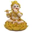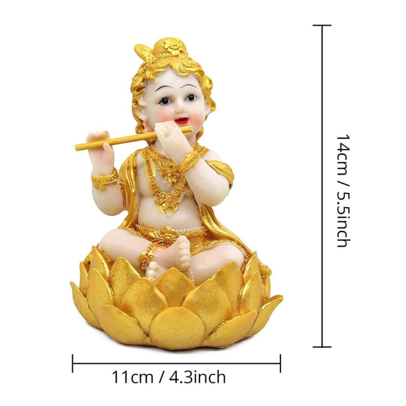 This elegant TIED RIBBONS Lord Krishna idol is crafted from high-quality resin with a glossy golden finish. Designed as a beautiful decorative showpiece, it brings joy, positivity, and prosperity to any space. Perfect for gifting on festivals, birthdays, anniversaries, or for enhancing home décor—living room, pooja room, study table, office, or as a thoughtful return gift.