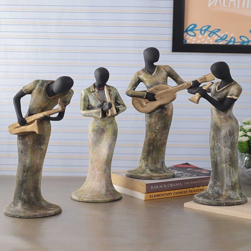 This set of four hand-crafted polyresin musical-lady figurines by TIED RIBBONS serves as an elegant décor piece for homes or offices. Painted with fine detailing and designed for long-lasting durability, these 34 cm tall showpieces are ideal for weddings, housewarmings, festive gifting, and indoor decoration.