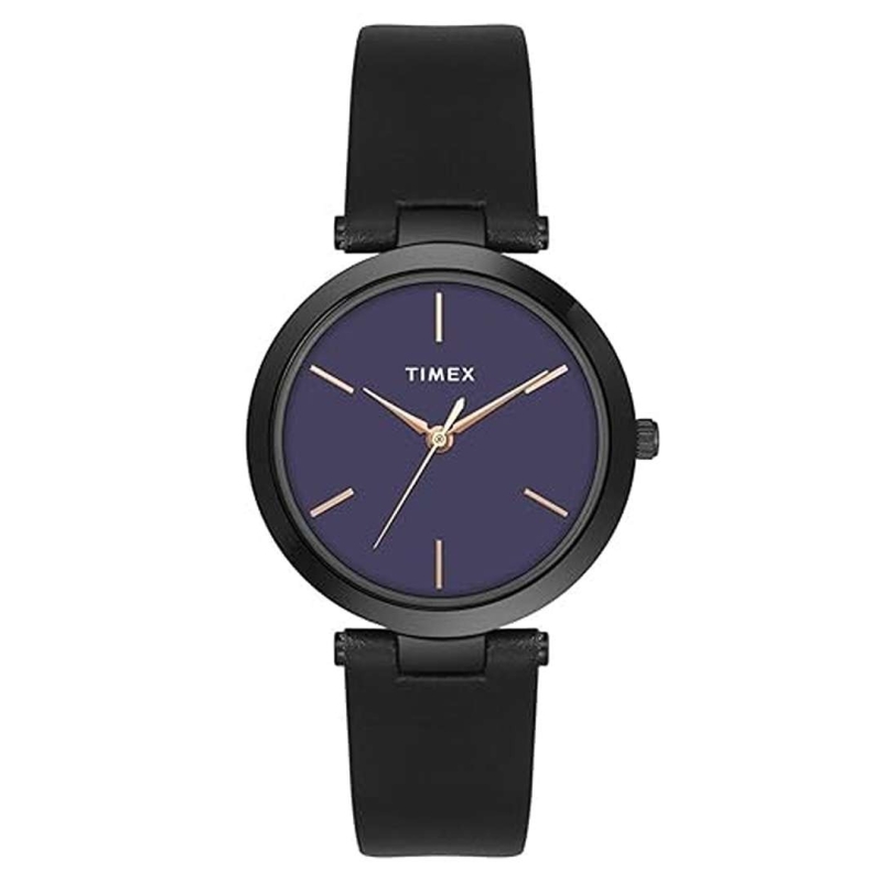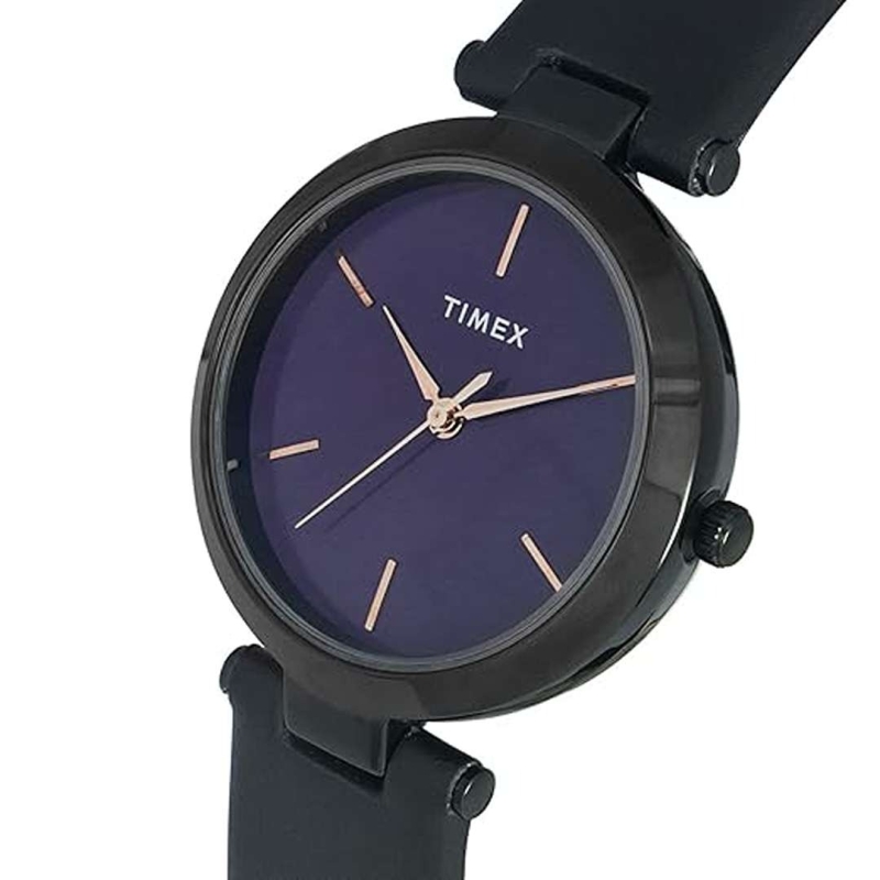 The Timex TWEL118SMU02 is a stylish women’s watch featuring a vibrant purple dial, sleek black leather strap, and a refined brass case. Equipped with a day display, water resistance up to 30 meters, and quartz movement, this elegant timepiece blends functionality with contemporary fashion.