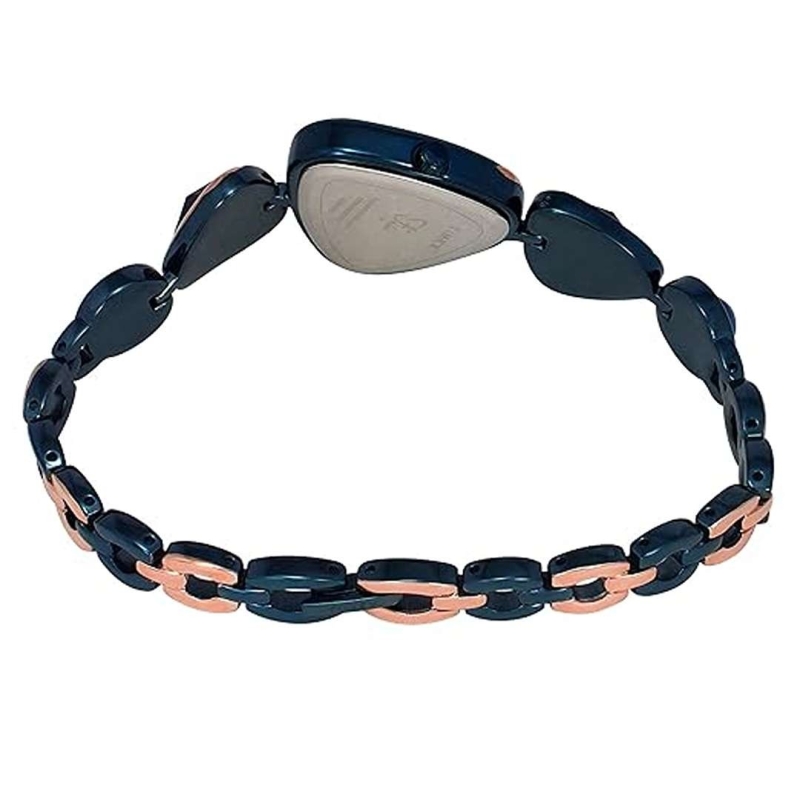 The TIMEX TWEL17702 is a women’s triangular analog watch featuring a 26.5 mm brass case, two-tone brass band, mineral crystal, and precise quartz movement. It’s water-resistant to 30 m, lightweight, and comes with a 1-year manufacturer warranty.