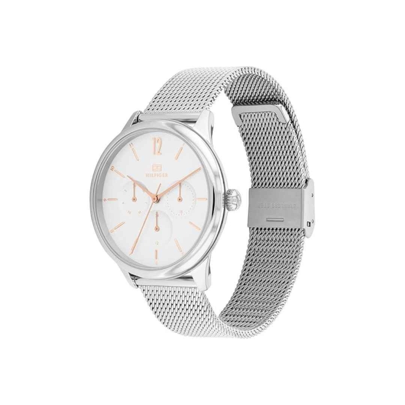 The Tommy Hilfiger TH1782456W is a sleek and lightweight multifunction men’s casual watch featuring a 38mm silver stainless steel case and band. Powered by a reliable quartz movement, this stylish timepiece is manufactured by Titan and offers a 2-year warranty for manufacturing defects. It comes with a secure build and polished aesthetics, ideal for everyday wear.