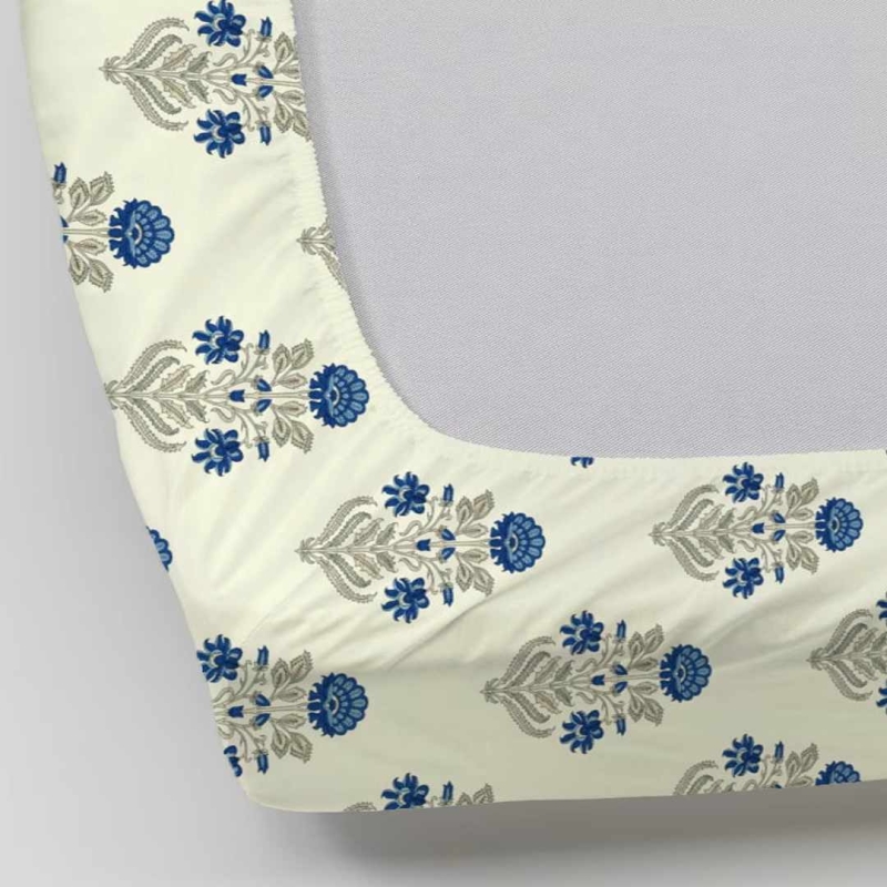 Upgrade your bedroom with the Trance Home Linen Aangan Blue Elastic Fitted Bedsheet Set, crafted from 100% cotton with a soft 180 TC weave for lasting comfort. Designed with a secure elastic edging and matching pillow cover, this printed bedsheet adds style and convenience to any room. TUV "ISO” certified for quality assurance, it’s easy to maintain and perfect for everyday use or gifting.