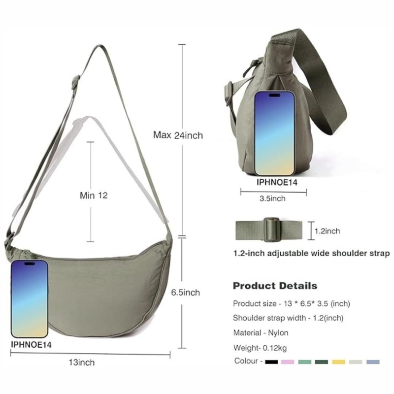 Tressential Nylon Half Moon Shape Crossbody Sling Bag Green